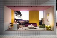 Entrando al padiglione 16 lo stand Zanotta appariva come un’imponente architettura a quadretti, un volume definito e ripartito da un reticolo equipotenziale e infinito, che idealmente connette i luoghi alle persone, dove ogni cosa è parte di una relazione e stabilisce un’interazione. Zanotta propone una rappresentazione del vivere contemporaneo, sospeso tra mondo reale e virtuale, dove i confini geografici sono abbattuti e le città sono interconnesse, parte di un unico tessuto urbano.