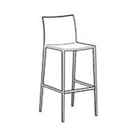 Stools. The Leo 2292 model has a frame, seat and backrest entirely upholstered in leather, Ecofire or cowhide. The Lio 2291 model has a frame in polished or talc, graphite or black painted aluminium alloy, while only the seat and backrest are upholstered.