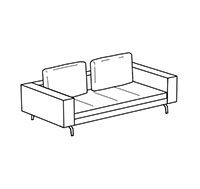 一体沙发、组合沙发、矮凳。饰以抛光铝合金、本色或黑镍缎面工艺、或黑漆。钢架结构。弹力条悬挂。渐变聚氨酯/杜邦Dacron纤维衬垫。坐垫内芯填充聚氨酯/杜邦Dacron纤维。靠垫和扶手垫内芯填充鹅毛。柱形抱枕内芯填充聚氨酯/热粘合聚酯纤维。布料或真皮护套可拆卸。