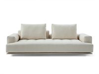 Inspired by the spare simplicity of the traditional Japanese futon, this sofa evokes the appearance of a thick padded mattress resting upon an upholstered wood base. The refined, quilted motif delimits the generous seat cushion, embellished by the sartorial detail of hand-made toggles in nuanced shades of the upholstery. The design is characterised by the dynamic alternation of different thicknesses and heights, mimicking an urban skyline, an architectural composition created from harmoniously contrasting materials, finishes and volumes.